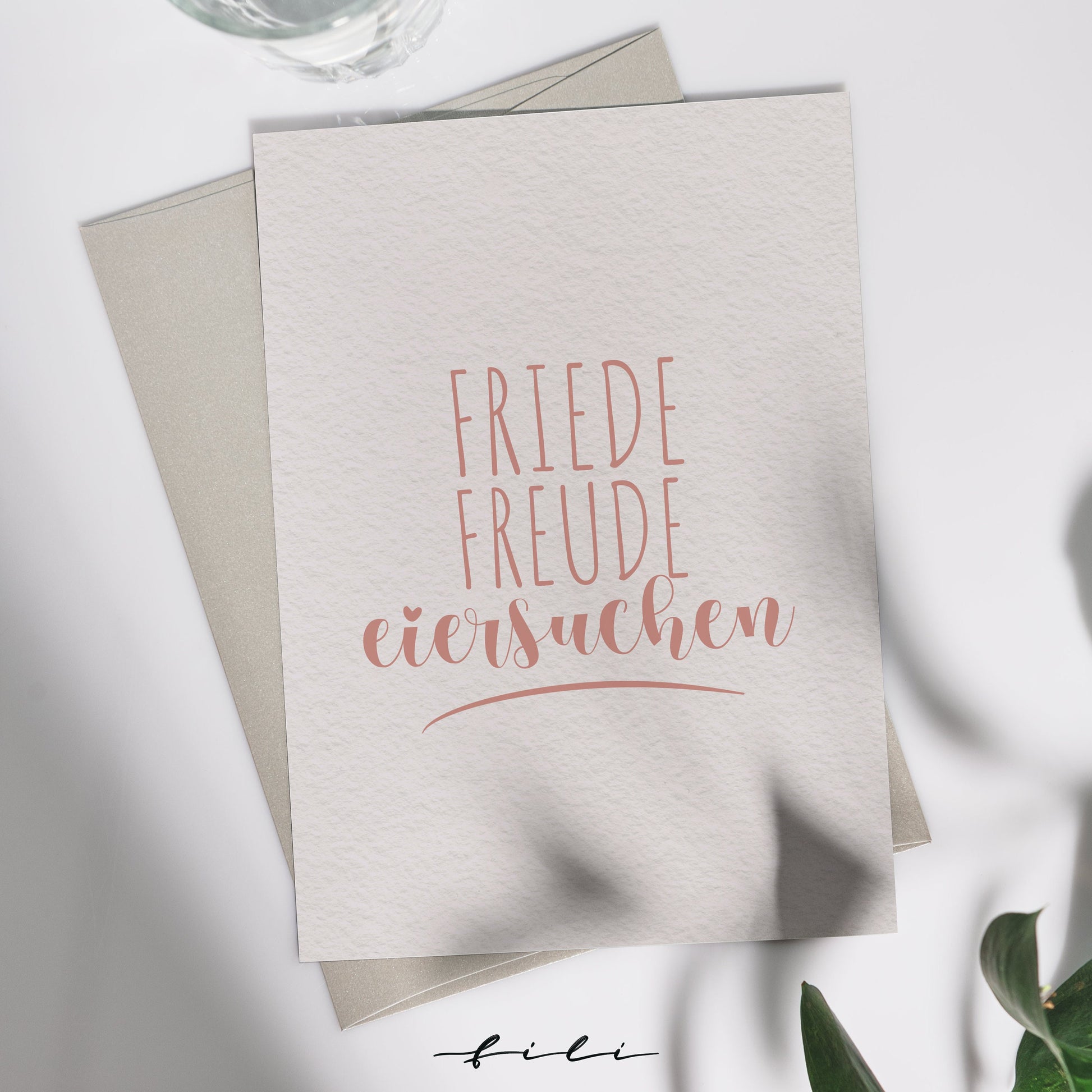 Osterkarte Friede Freude Eiersuchen | Klappkarte oder Postkarte